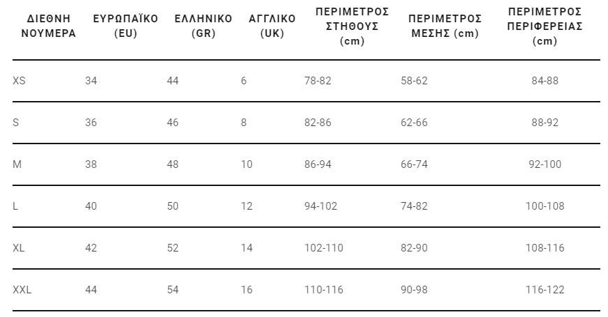 Σε περίπτωση που θέλετε να κάνετε την παραγγελία σας online και δεν είστε σίγουροι για την επιλογή μεγέθους, στο πεδίο ΠΑΡΑΤΗΡΗΣΕΙΣ ΠΑΡΑΓΓΕΛΙΑΣ που εμφανίζεται κατά την ολοκλήρωση, παρακαλούμε γράψτε τις διαστάσεις σας. Έτσι θα βοηθήσετε να φροντίσουμε εμείς για την αποστολή του σωστού μεγέθους. Λόγω πλήθους σχεδίων, είναι αδύνατο ο οδηγός μεγεθών μας να ανταποκρίνεται ακριβώς στα μεγεθολόγια όλων των ρούχων.